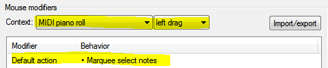 Потому как он в MIDI Editor Mouse modifiers отсутствует - переназначить можно только правый