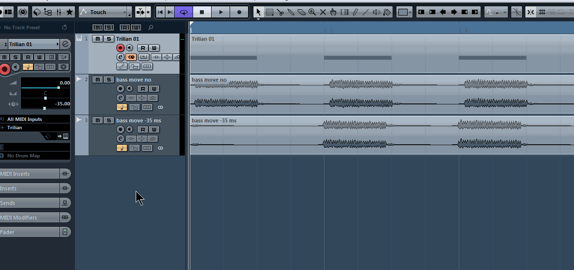 Не правильно это. Нужно при минусовых значениях не текущий трек двигать за пределы начала проекта (т.е. в никуда), а все прочие треки проекта сдвигать!