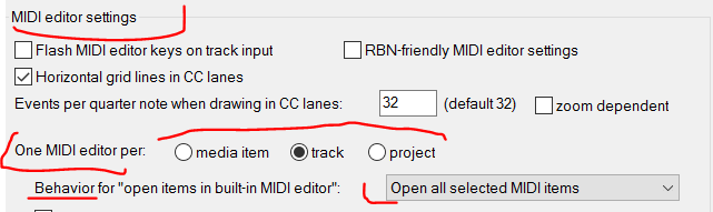 А можно в рипере открывать миди айтемы все сразу, чтобы они отображались в одном миди редакторе? Так можно было делать в кубейсе и это удобно при смене тональности всего трека, или для удаления/редактирования партий конфликтующих ритмическии/мелодически между собой