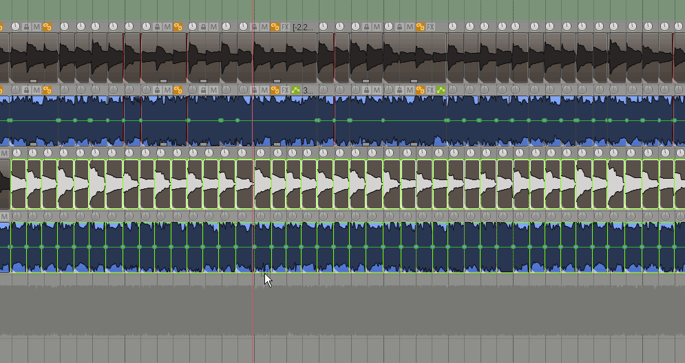 помогите с кроссфейдами! я нарезал гитару, отквантизировал, после этого появились нахлесты и соответственно пустые участки между слайсами (нарезаные айтемы). как в рипере применить на все выделеные слайсы кроссфейд с заданой (дефолтной, где ее настроить?) длиной, притом что бы он брал следующий за первым слайсом айтем и вытягивал его к предыдущему. и так сразу с несколькими что бы было. в кубейсе это решалось кнопкой X, в рипере мне этого сильно не хватает и приходится все кроссейды делать и редактировать руками