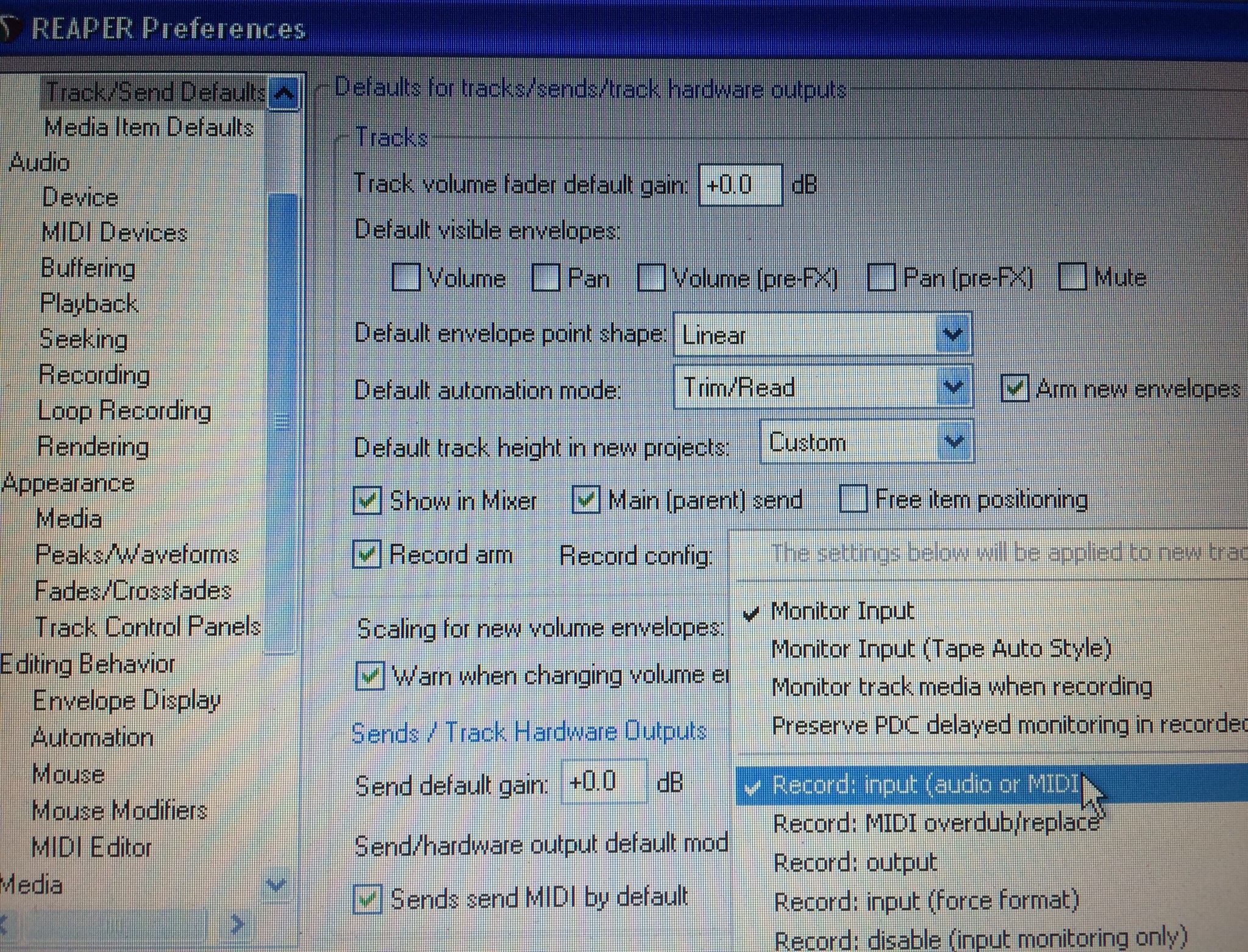 Как сделать чтобы Record: input (audio or MIDI) был по умолчанию когда открываю новый синт, сейчас приходится каждый раз переключать ?