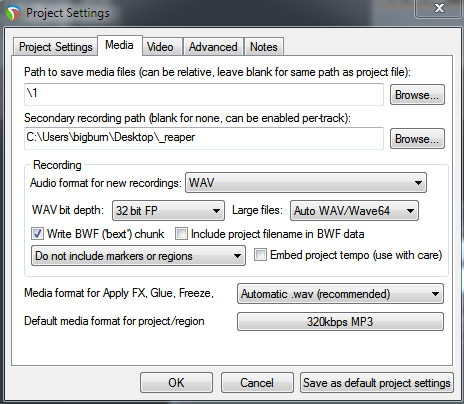 затем в Track recording settings указывается Record to audio path - Primary + Secondary