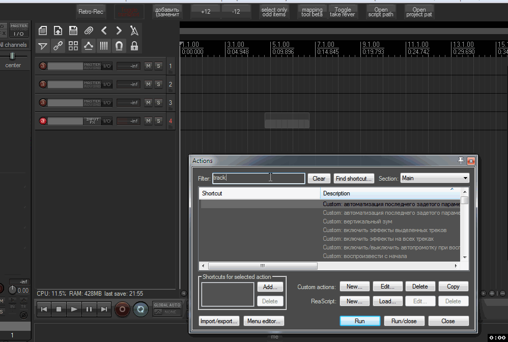 Подскажите, как его настроить аналогично Вегасу, мне нужно чтобы при нажатии на букву V , у него как в Вегаcе появлялась полоска на треке позволяющая регулировать звук. Так в Рипере вообще можно сделать? Очень раздражает дополнительная строка которая вылазит после нажатия V, её конечно можно убрать, нажав "move to media lane", ну это геморрой и лишние движения!