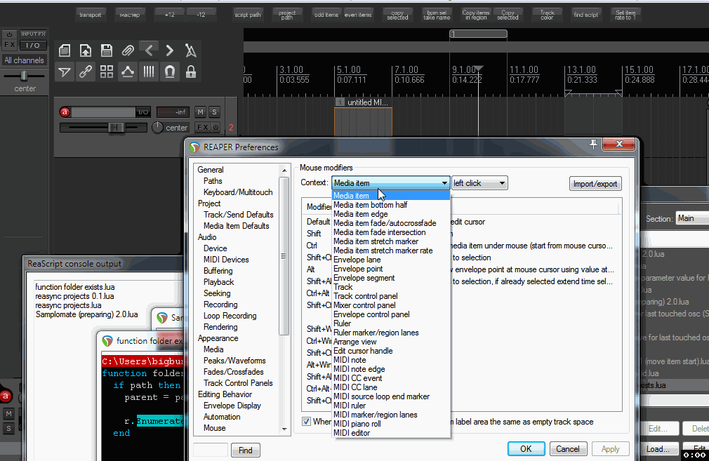 Есть ещё вопрос. ) Как переназначить выделение айтемов с правой кнопки мыши на левую, а дефолтное создание региона с левой вынести соответственно с поля аранжировки на линейку с тактами - секундами?