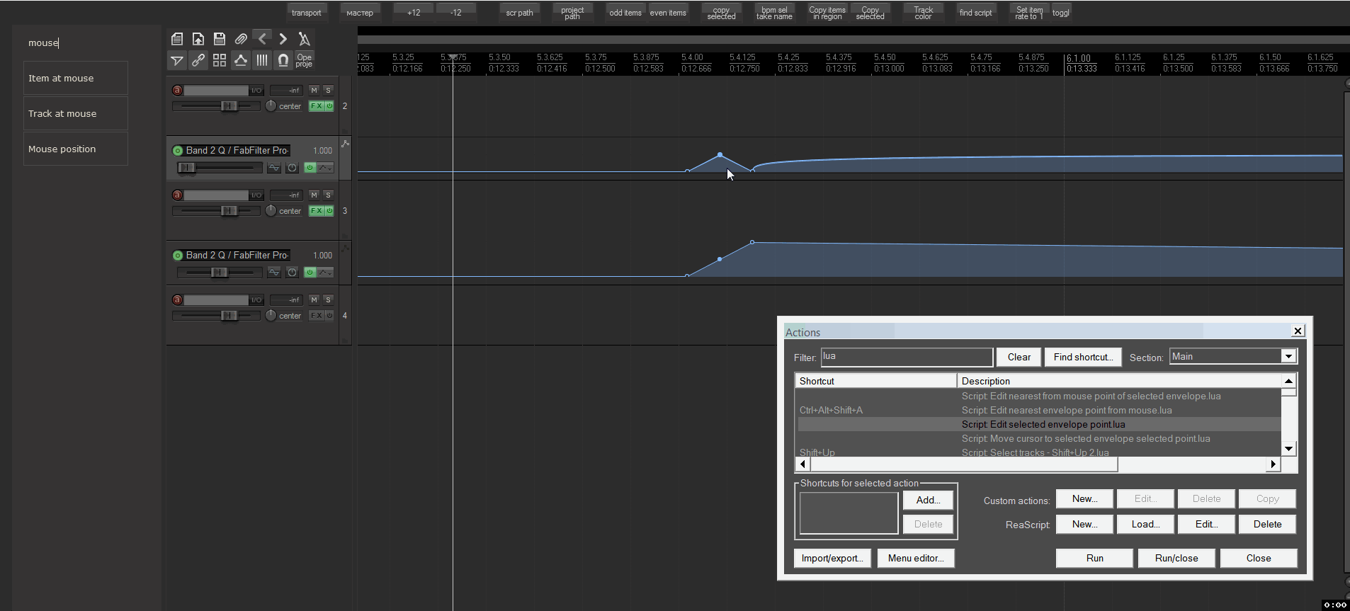 @Aleksandr Oleynik, Да в том то и дело, что не хотелось чтобы курсор всю дорогу за мышкой бегал. Можно конечно и так, но по сути вся затея чтобы вызвать свойства поинта горячей клавишей. А оно привязано к Envelope: Edit envelope point value at cursor. Если есть способ вызвать окно значения без этого, то сразу будет здорово.