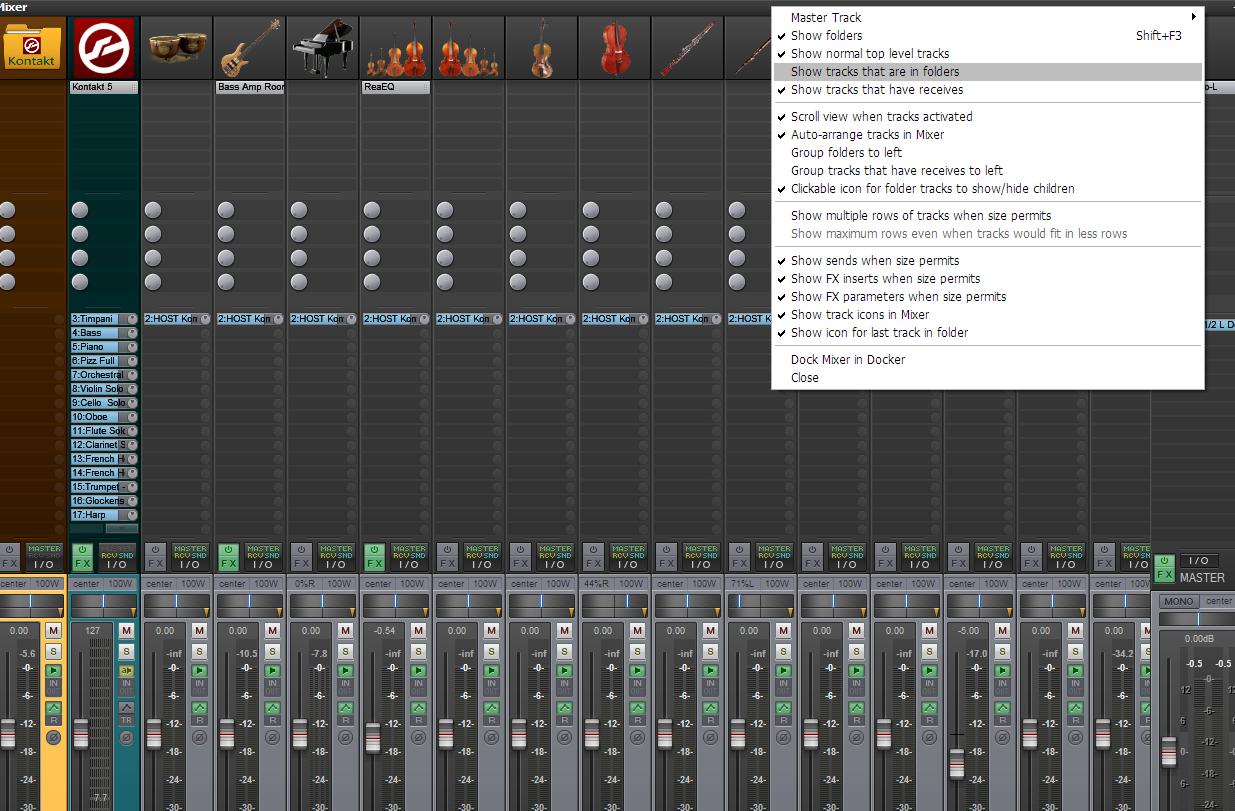 1. Чего не срабатывает скрытие треков в папках в микшере при использовании многоканальных инструментов Kontakt и Battery?