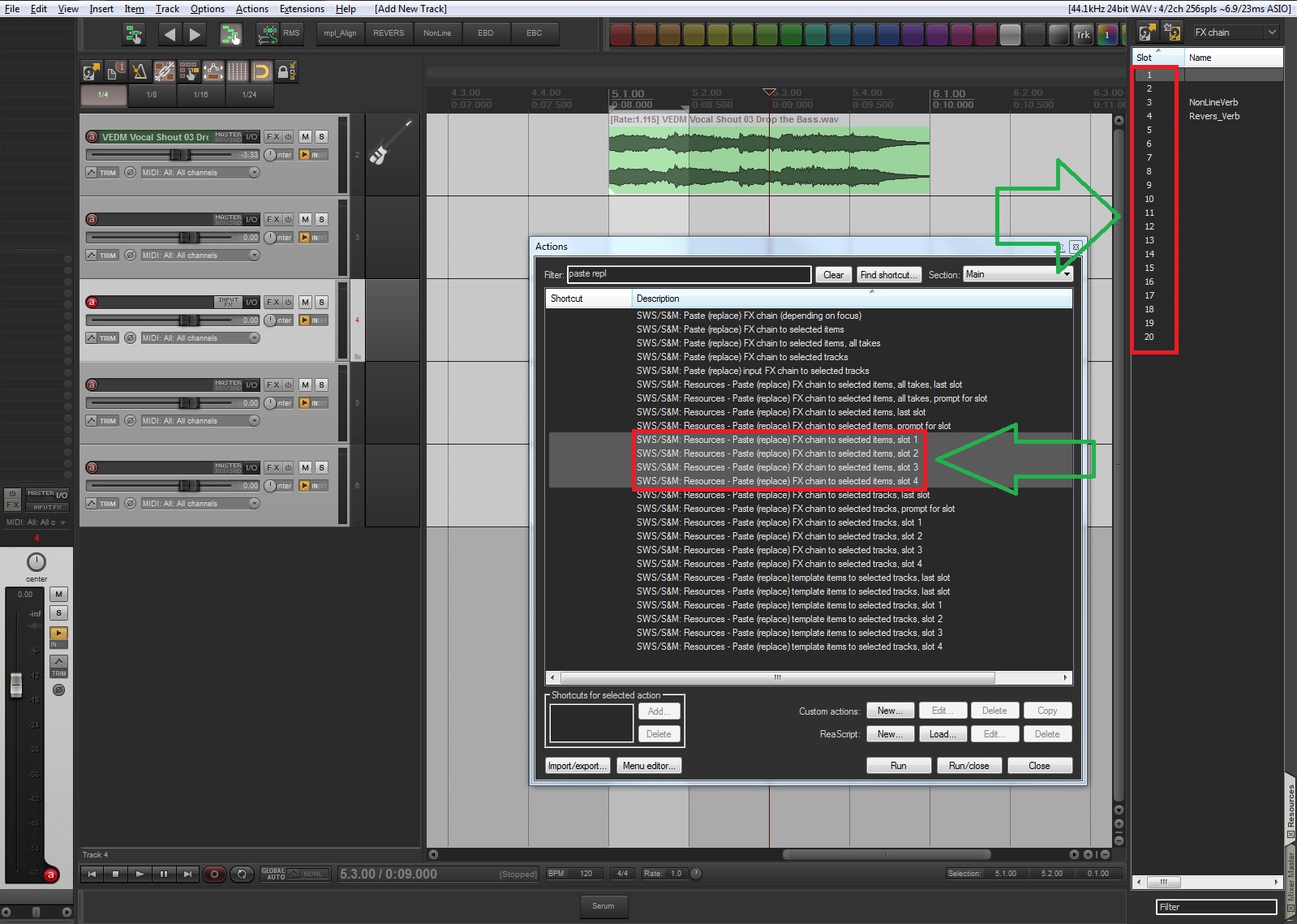 S&M_PASTE_TAKEFXCHAIN=4 ; [Main] Resources - Paste FX chain to selected items, slot n