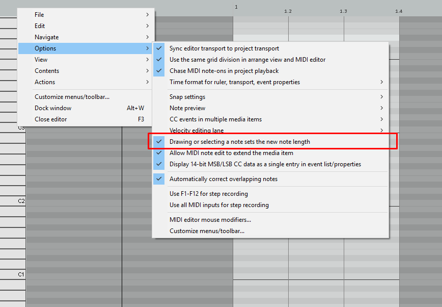 вот то, что Вам нужно1. Двойной клик мышкой ставит ноту в пианоролле. Но длина её зависит от выбранной в grid. А можно сделать так, чтобы длина была такая же, как у предыдущей нарисованной ноты? То есть, нарисовал целую и хочу продолжать в том же духе, а он четвертушки продолжает, например.