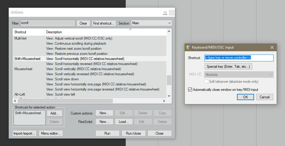 всё переназначается в Action. Найдите нужные команды и переназначьте их на нужные Вам комбинации функц.клавиш и колеса мыши2. Колесо мыши меняет масштаб по горизонтали. С зажатым контролом - масштаб по вартикали. Можно ли сделать, чтобы это были не масштаб, а прокрутка по вертикали колесом и горизонтали колесом с контролом?