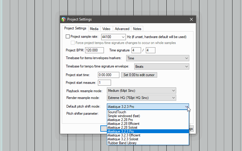 @vitalker, Забыл ещё спросить . на треке я указал алгоритм эластик про 3.1 . Трек звучит в проекте , по сетке 116 BPM . Я просто меняю темп проекта на 120 bpm . Трек звучит уже в 120 bpm . Вопрос , для ускорения темпа используется эластик про 3.1 , тот , что я указал в свойствах айтема или какой то глобальный для проекта ( изменяется в настройках проекта к примеру ) . Повторюсь , не знаток рипера , этот момент мне непонятен . Спасибо.
