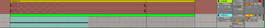 Есть референсный звук (бочка, например) на треке 1 (mute), а уже на треке 2 мне надо крутить свой звук по форме волны референсного звука.