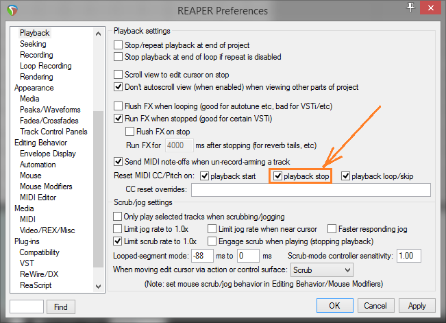 где-нибудь описано решение с зависанием некоторых нот VSTi при остановке воспроизведения. Зависает через раз. То есть остается нажатой и звучит нота VSTi на дорожке с включенной записю. Если на дорожке запись деактивировать, звук исчезает, но клавиша на VSTi остается нажатой.