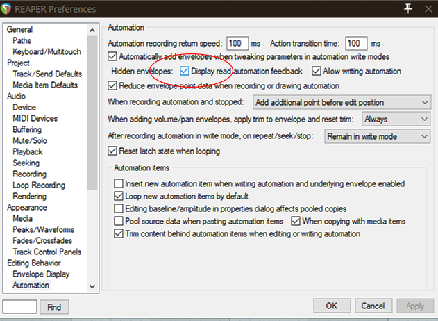 Что то не работает, или я не так делаю... При скрытие автоматизация Arm for recording отключается и фейдера не двигаются. (сама автоматизация работает, но визуальной демонстрации нет). Вот как у меня происходит:@smrz1, обрати внимания на скрипты типа SWS/S&M: Toggle arming of all active envelopes for selected tracks