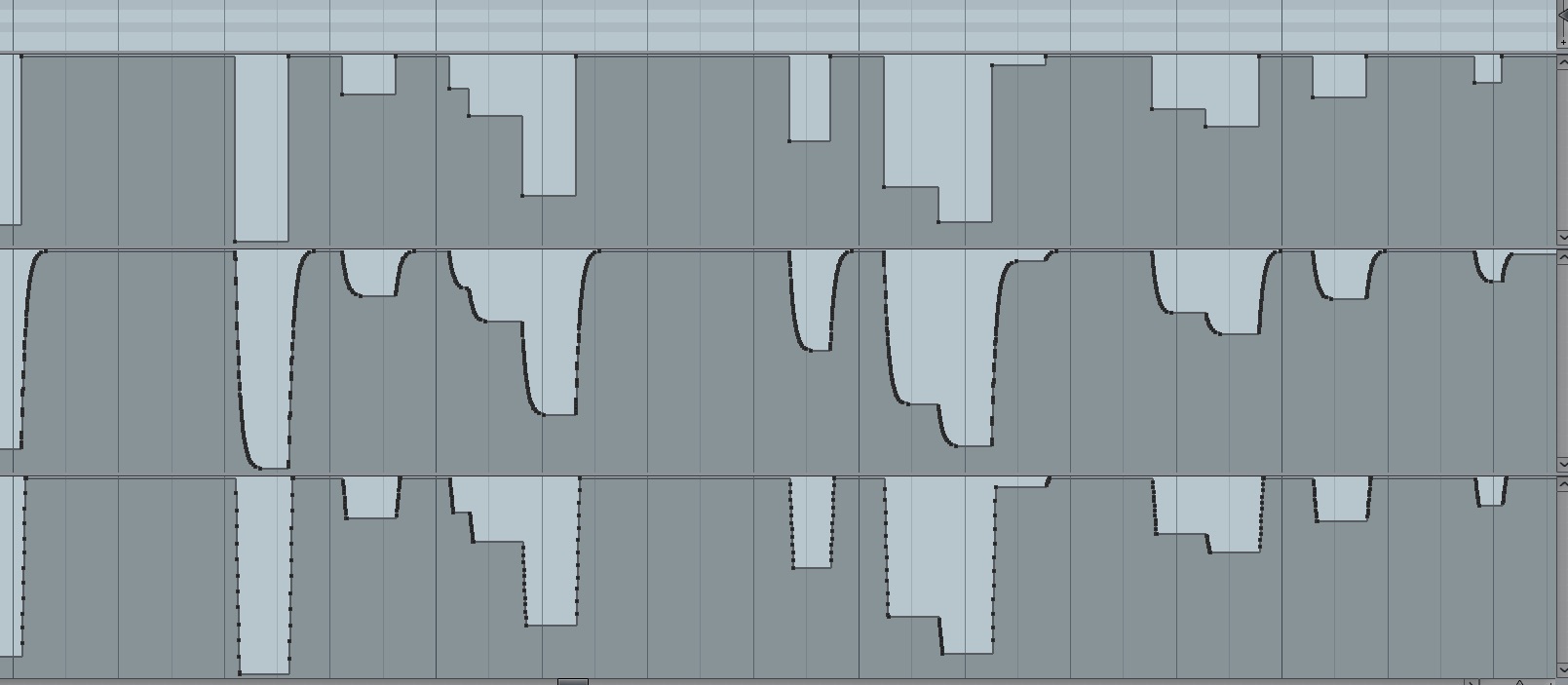 Спасибо за идею, но так я уже делал, это было первое и самое логичное, что напрашивалось. Результаты не устраивают, потому что штатный алгоритм у них тупой, не адаптивный ко временным характеристикам исходника. В моём тестовом сигнале на первом треке есть и плавные изменения, и резкие (например, это делалось тремоло мехом баяна). Так вот, при небольших значениях Smooth (например, 20), хорошо передаются быстрые изменения CC (на рисунке видно, что крайние значения успевают дойти до 0, что важно!), но на плавных изменениях по-прежнему ступеньки. И наоборот, большое значение сглаживания устраняет ступеньки в плавном изменении CC, но при этом быстрые изменения смазываются - значения CC до нуля не доходят - потому как не успевают.