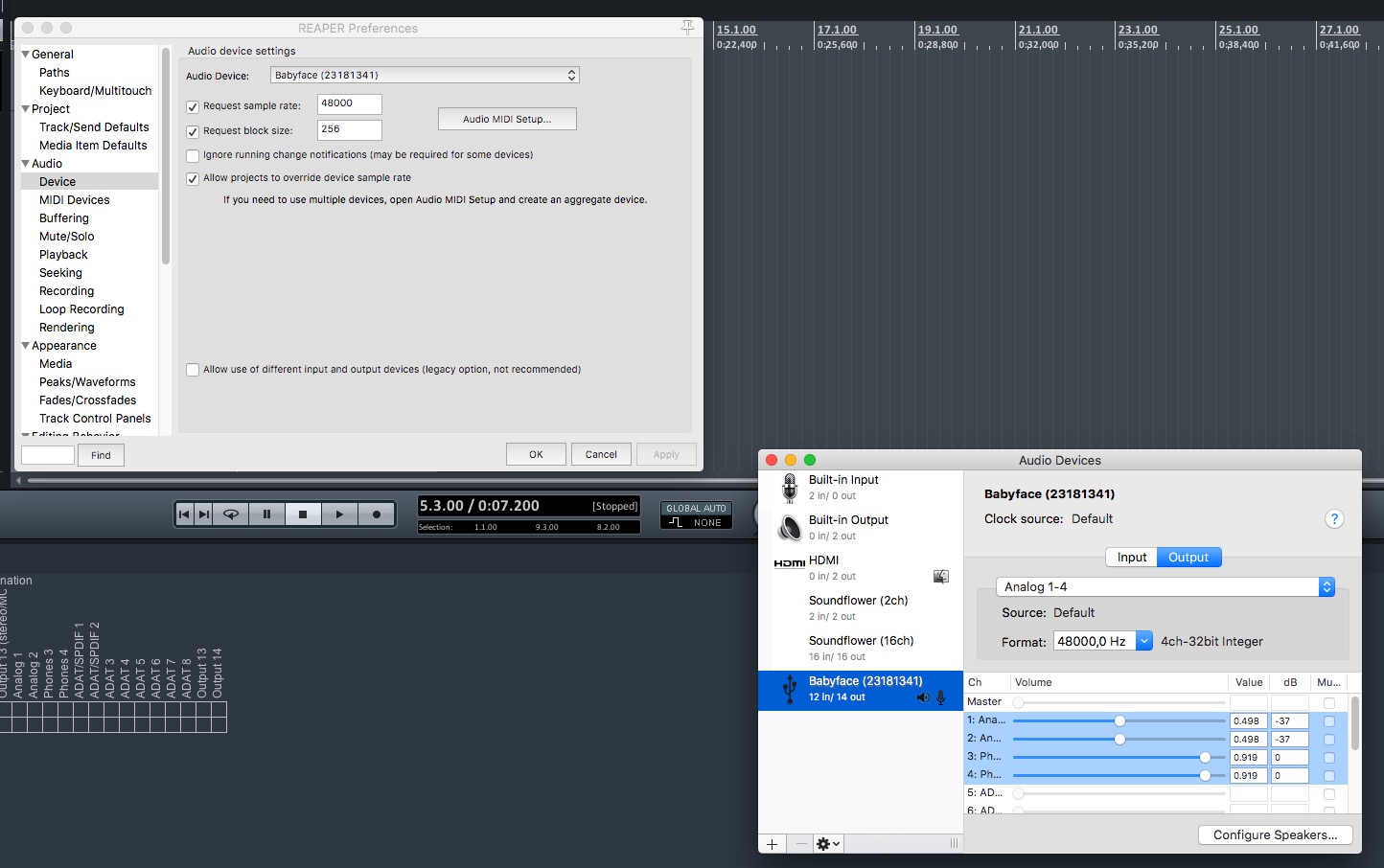 Видимо на маке как-то по другому реализовано. При нажатии на кнопку Audio Midi Setup открывает системное окно - это не то. Ну да ладно. Удалил всю папку рипера, а затем импортировал свой конфиг - заработало.