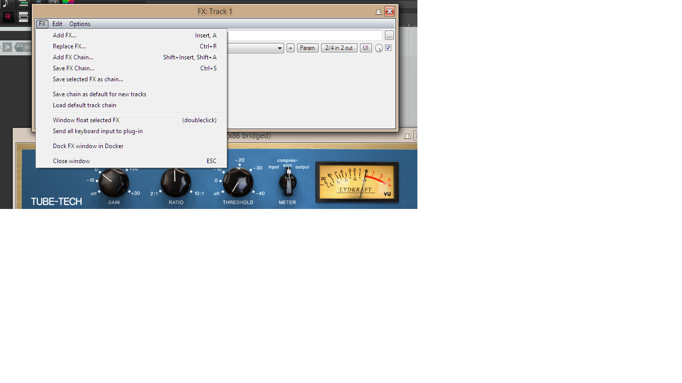 Не понимаю, о чём речь. Меню всегда было таким. В fx browser (не fx chain) правой кнопкой по плагину и выбрать embedded, чтобы плагин не через бридж открывался.
