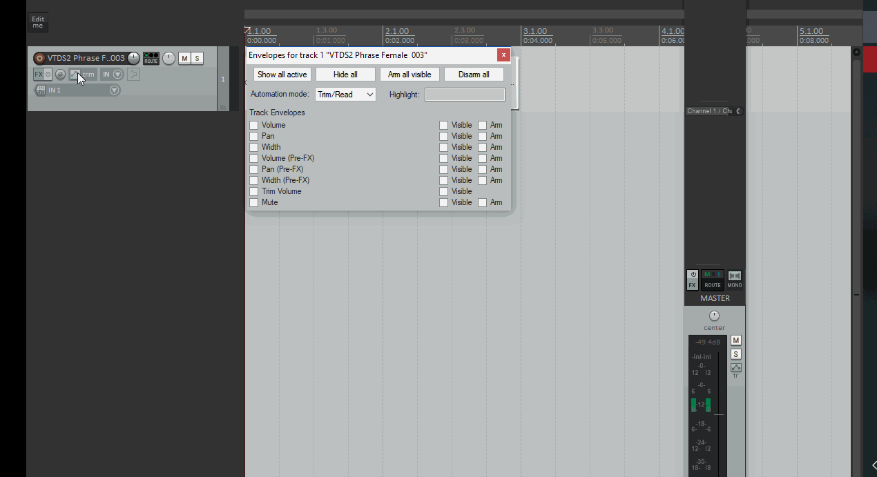 @vitalker, Да, работает (Options->Automation items-> галку на Bypass underlying envelopes) ,но когда создаёшь новую огибающую, она создаётся забайпашеной и приходится лезть в опции и переключать поставленную ранее галку.