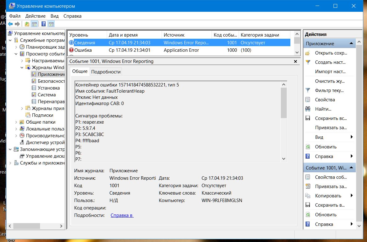 Не могу найти причину вылета Рипера (Win10x64). С некоторых пор при попытке открыть другой проект (в том же окне или в новом) - вылетает. На другом компе работает нормально. Где копать?