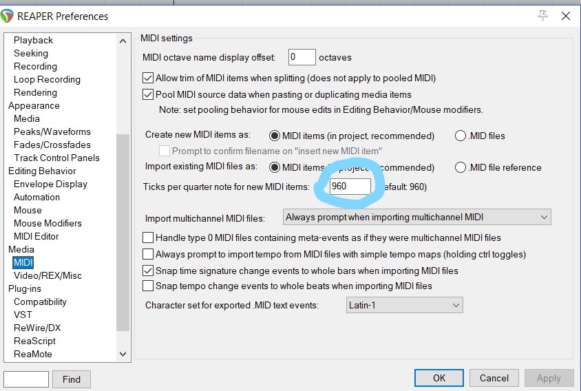 Да нет же. Эту страничку я знаю, и как поменять там значение - тоже. Вопрос в том, как я могу воспользоваться этими установками. Иными словами, каким образом, я могу установить значение position, например, для выбранной ноты в миди редакторе, или айтема в поле аранжировке, соответствующее масштабу этой градации. Вот я установил там 960, и хочу установить значение position для айтема 789, например. Этого я пока не нашёл. Могу пользоваться градацией по милисекундам, долям, в миди редакторе да, по миди тикам, но там только исходя из 480 тиков на четверть, несмотря на то, что установлено 960.