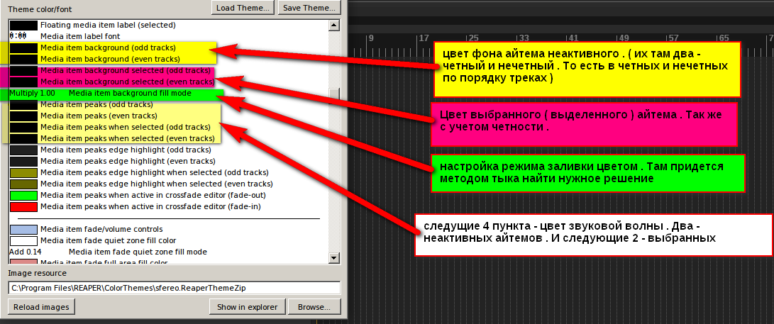 Так то оно так, но их там много - label, background, odd tracks, event tracks. Вроде все перепробовал, цвет выделенного айтема не меняется. У меня тема Rado, с некоторыми редакциями, но там все айтемы серые, выяснить какой из них нужен сложно)))))