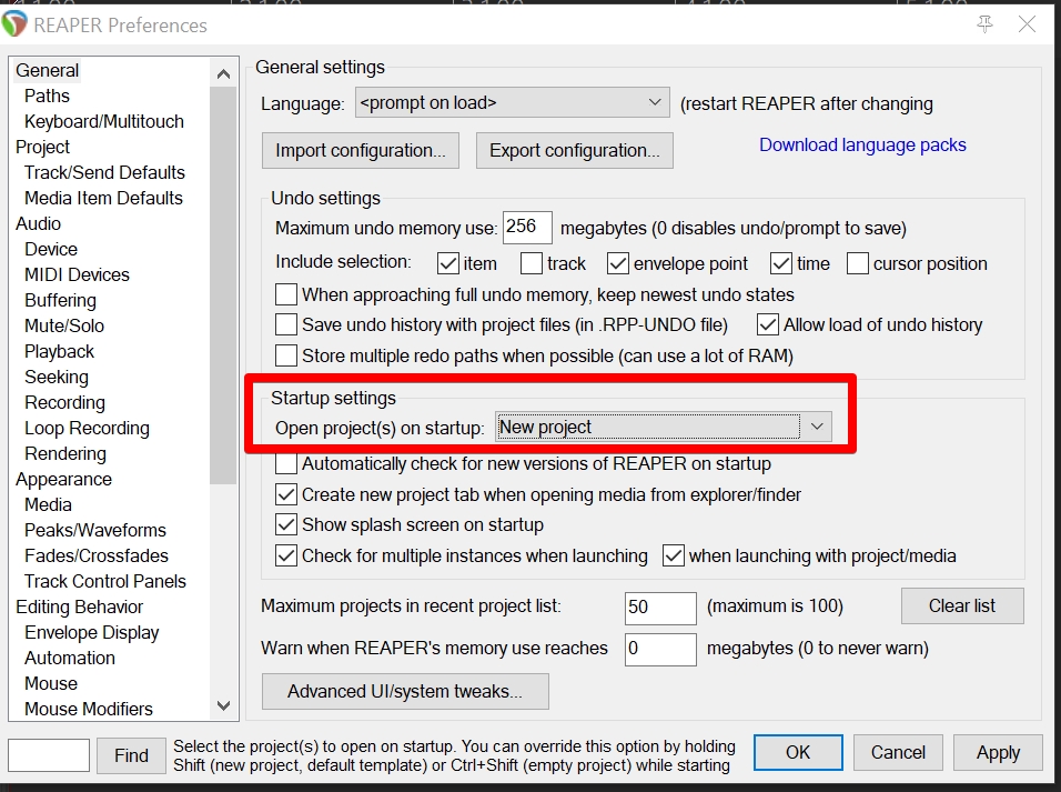 Двойной клик по первой команде SWS/S&M: Set global startup action, жмём Ctrl+V.