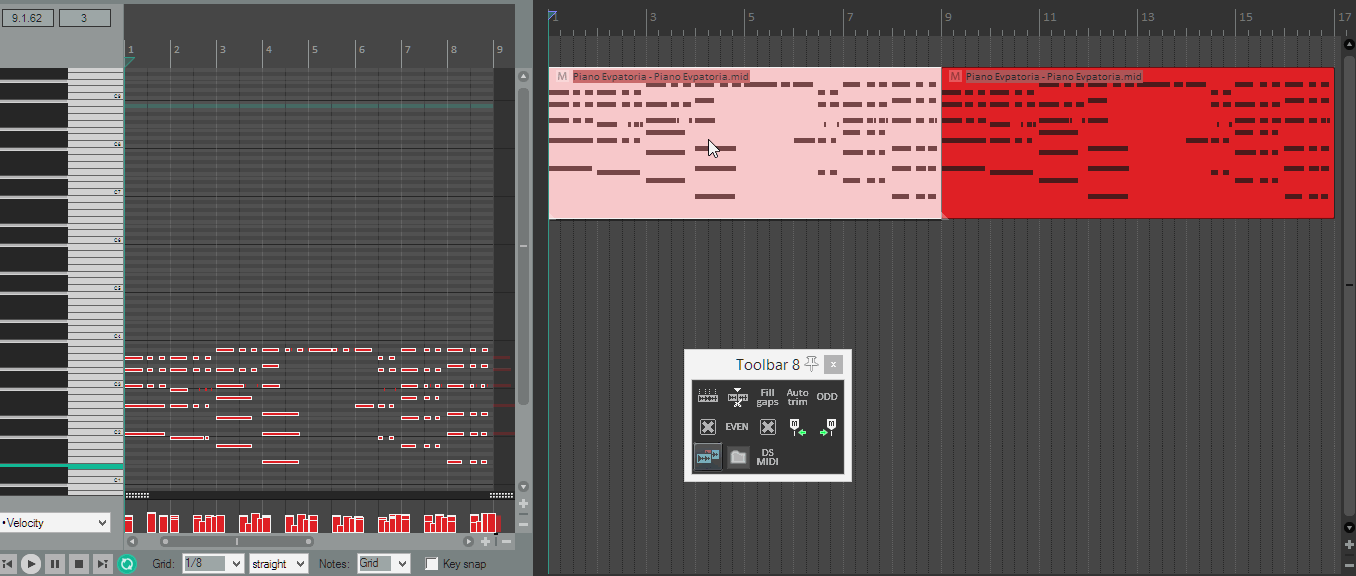 Скажите. Есть ли эта тема на форуме. Как сделать свой тулбар для пианорола? На подобии как в студио уан, типа ластик,. карандаш и т..д. . Все необходимые инструменты или (панель инструментов) для редактирования миди нот. Как на фото, там где прикрепить все эти инструменты. Чтобы из Кастом меню найти все эти нужные команды, для добавления инструментов.