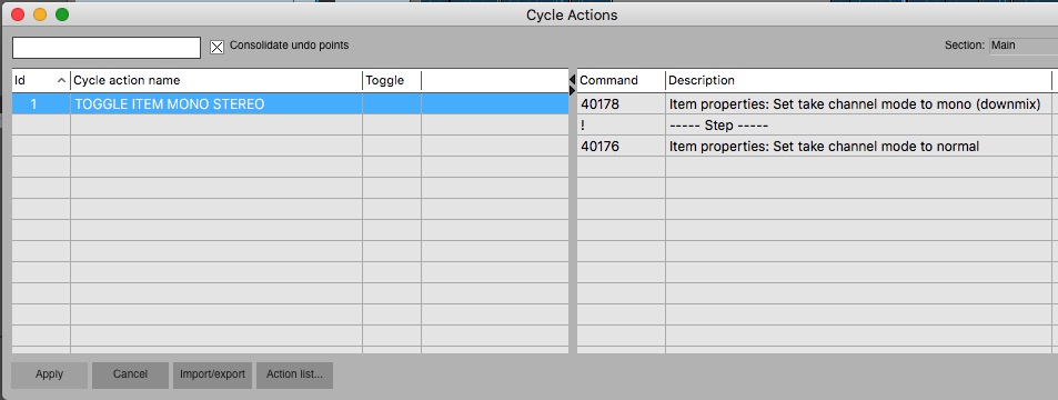 и такой же экшн для моно. Если выделения нет, принтит всю дорожку, если есть, то только в выделенной области.