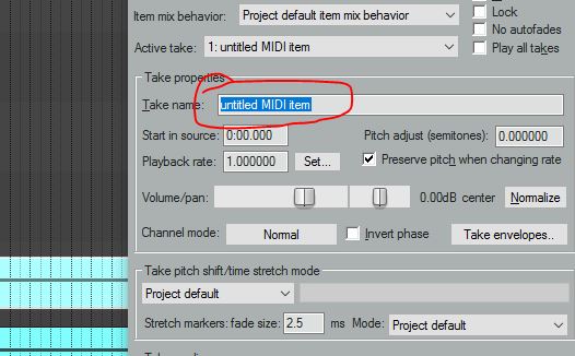 Скажите. Можно ли сделать такие настройки. Это когда я переименовываю миди айтемы, то в настройках айтема стоит эта надпись-untitled MIDI item.. Приходится все время под менять это на нужное мне имя, или вырезать а потом вставлять или писать. Бывает не удобно. как то с этой надписью.