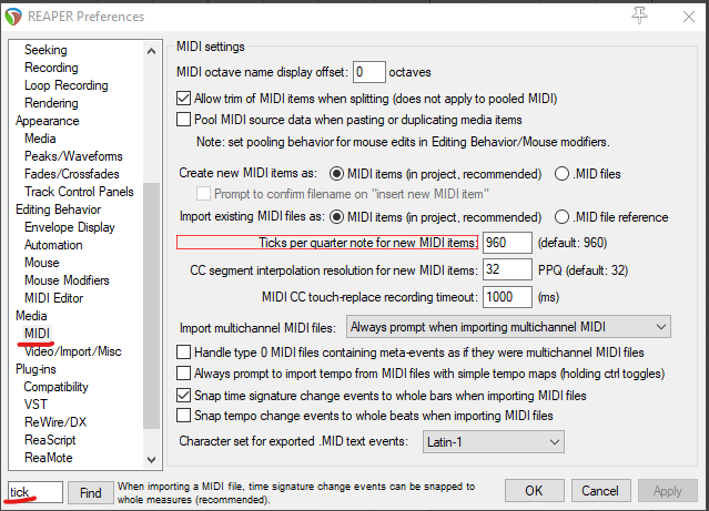 Спасибо большое за содержательные ответы и vitalker особенно.По миди понятно."Подробность" рипера в 2 раза сильнее-480 против 960.Супер.Но у меня проблемы с аудио.В кубэйсе аудио-четверть разбивается на 480 и надо переносить аудио в рипер.Как отрегулировать в рипере,чтобы четверть делилась на 480 единиц.