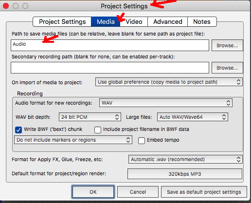 Вот нашёл как в Project Media/FX Bay сделать так, чтобы они при удалении автоматически сохранялись. А дальше Project Bay надо создать, куда они сохраняются? По умолчанию, я так понимаю они сохраняются в папку Рипера. А вот чтобы автоматом при создании проекта в определённое место, пока не понял как сделать.