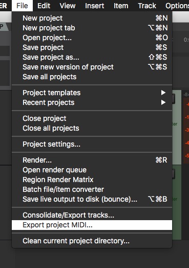 Но так сохраняются только импортированное миди. Созданные в файле проекта, видимо только через Project Media/FX Bay?