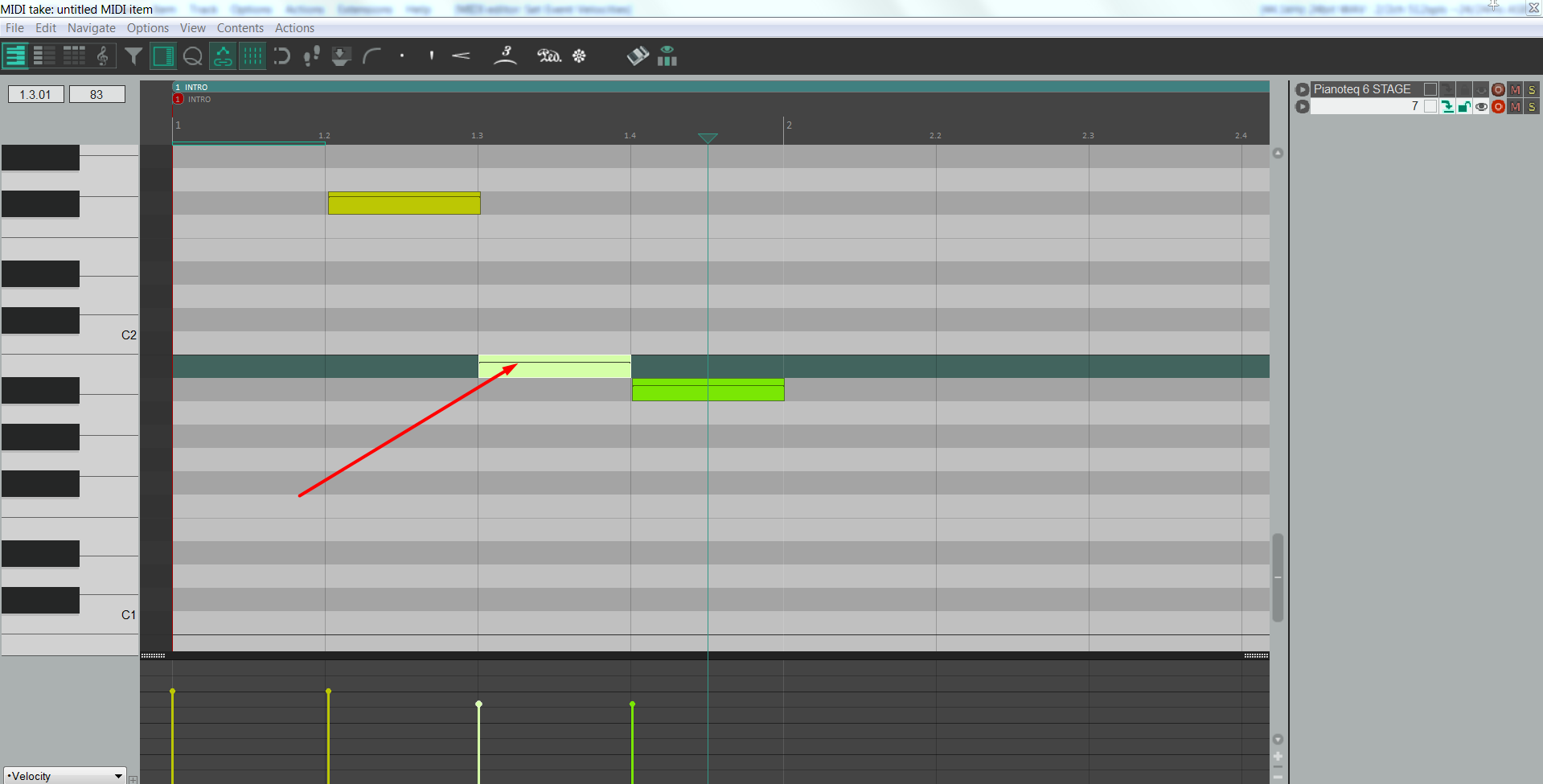 В S1 кстати, если за ползунок велосити трогать, то слышишь как меняется громкость звука, думал и в рипере также будет, но увы. Просто мне лично не очень удобно целиться в ноту в пианоролле и находить этот ползунок, рукка постоянно тянется вниз к ползункам велосити.