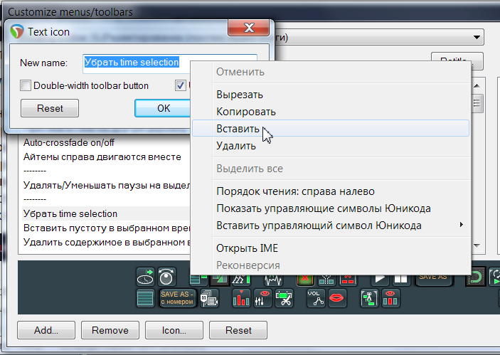 Какая то странность. Не могу скопировать текст в строку "Text icon", началось вчера. Сегодня уже не могу скопировать текст в action list. Печатать могу, а копировать - нет. Что это может быть?