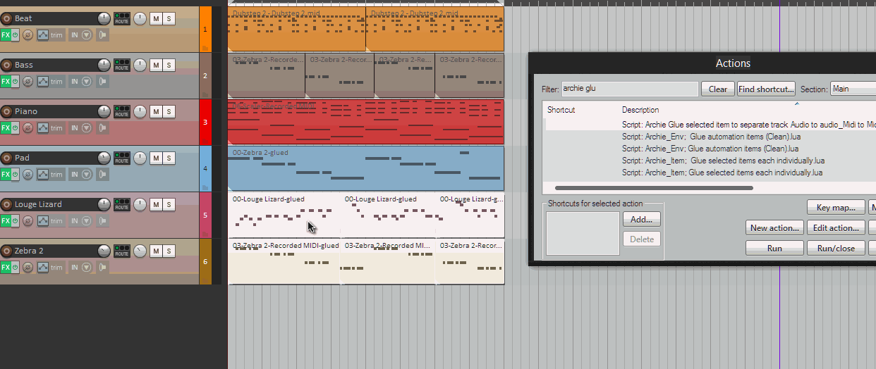 Item: Implode items across tracks into items on one trackКак объединить несколько миди-айтемов с нескольких дорожек в один айтем на одной? Именно чтобы один айтем получился, а не слои на одном треке.