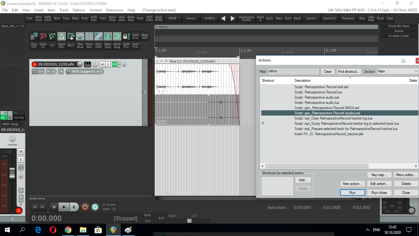 Братцы! Как заставить работать script gen Retrocspective midi eel, жму Run он ваще не реагирует... gen Retrocspective audio пашет норм?Reapack обновил репозитории поставил... Что не так?