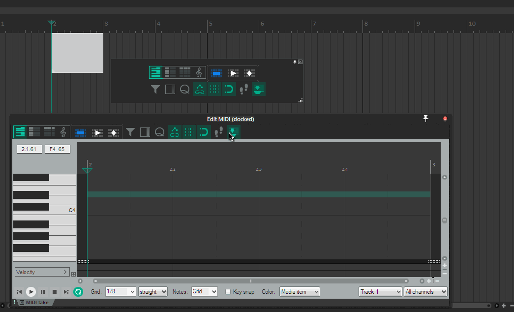 @Red Bull, Попробуй открыть файл "reaper-menu.ini" и просмотреть внимательно в нем если есть что то связанное с тулбаром миди, то поудалять это. Может в нем какие ошибки.