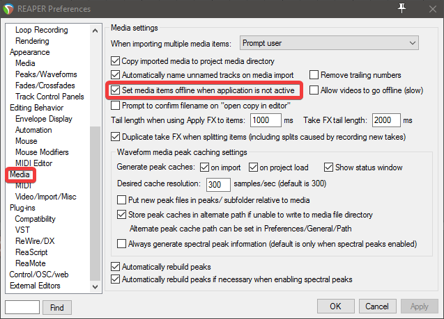 С мелодайном во внешнем режиме проблема только с отображением пиков, тоже rebuild peaks приходится делать, но звук меняется сразу.