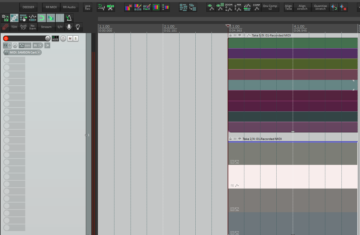 Как пример взаимодействия: у нас есть трек, в котором гитара в разных 10 местах играет один и тот-же кусок рифа. Включаем запись в луп-режиме и пишем туда этот риф в нескольких вариациях. Добавляем в айтем текстовый коммент с табами и фотку настройки внешнего процессора, чтобы не забыть, как нарулен звук. Туда же суем миди-файл переключающий пресеты на гитарном процессоре (пригодится для будущих живых исполнений) Копируем получившейся айтем в нужные 10 мест. Чтобы не было однообразно, в паре-тройке айтемов меняем тейки на вариации. Последний айтем растягиваем по длине, потому что в одном из проходов получилось удачно наиграть импровизацию после рифа. Там же заменяем миди сигнал, чтобы пресет гитары не менялся и пишем текстоый комментарий «не забудь использовать квакушку».