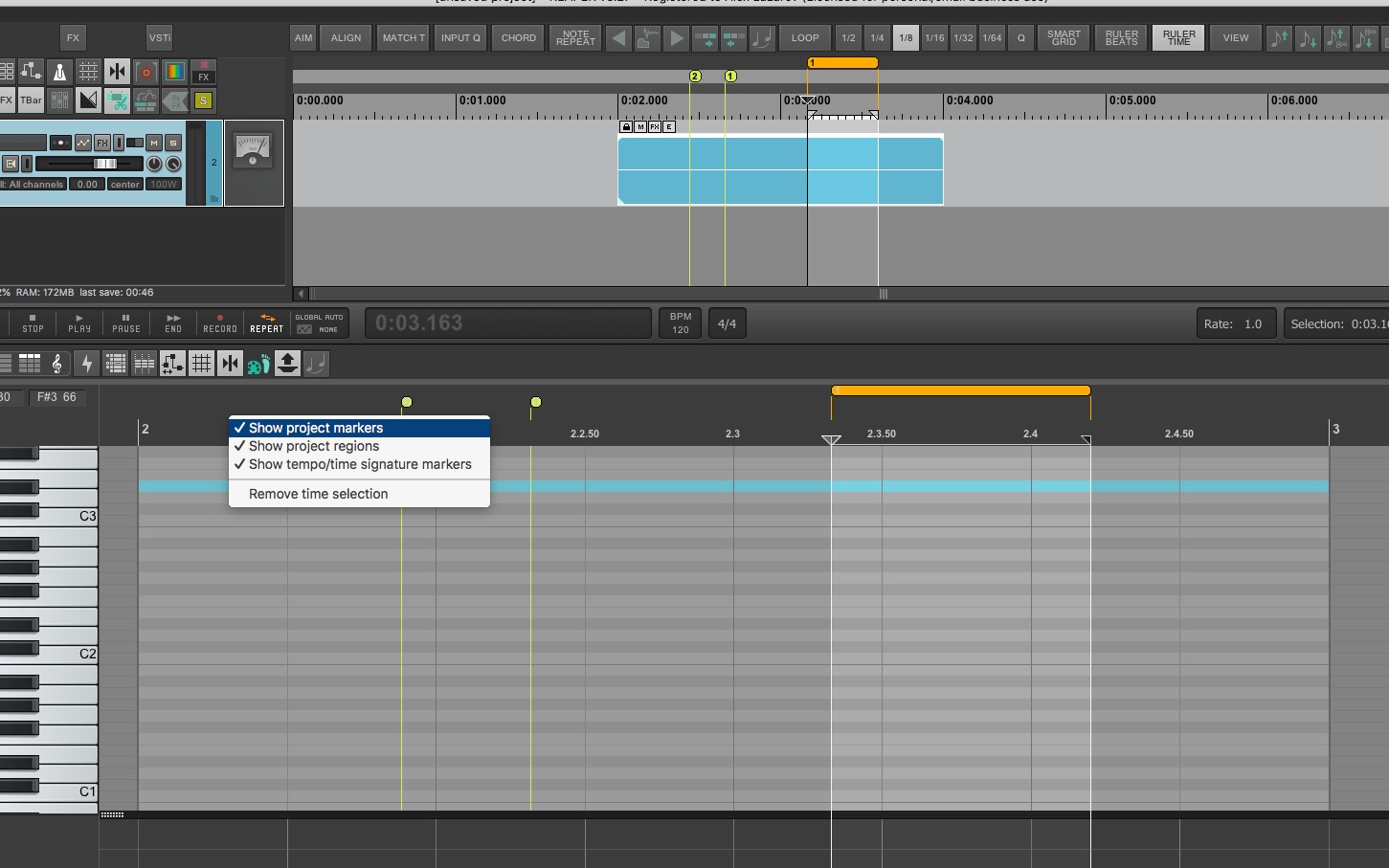 Не могу сообразить, как поставить маркер внутри Piano Roll. Например мы написали вступление, нужно обозначить его конец, переходим к куплету, и т.д. Нашёл только как ставить маркер на сам Item.