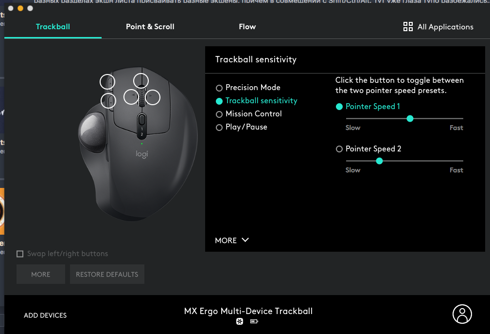 @Mr_Tsonts, Там рядом с колесом у меня кнопка активации точного перемещения курсора. Но не настраивается скорость, просто очень точное перемещение. По прогам у меня так - выбираешь приложение и в keystroke assignment назначаешь шоткат из Рипера например. Думаю у тебя так же.