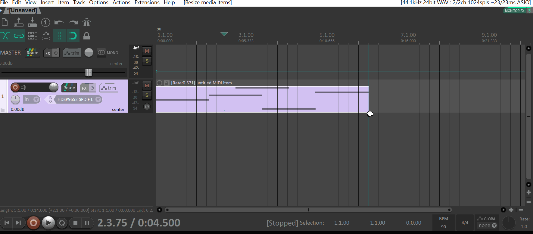 Как в примере увеличить скорость миди в два раза или замедлить в два раза при том же темпе. В других daw обычно double и half.