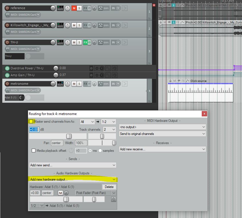 Подскажите как вывести дорожку с кликом на отдельный выход зв.карты. Нашел вариант с сендом, но так клик остается и в мейн выходе. А нужно только на 3й(например)