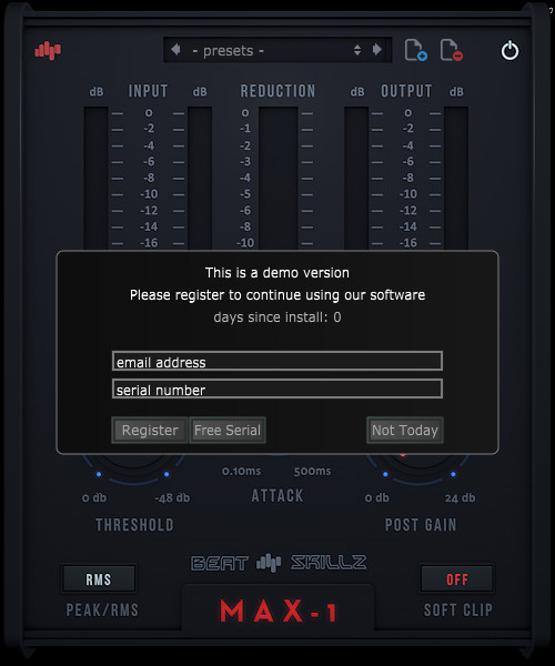 Beatskillz MAX1 Plugin Free. VST, AU, AAX Win Mac 64, 32 - https://www.beatskillz.com/max1/