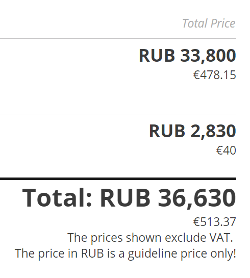 стоимость товара составляет 478 евро, но вместе с доставкой получается сумма превышающая 500 евро