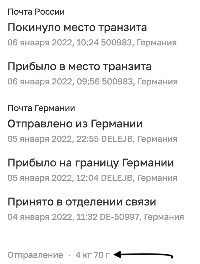 Заказывал мониторы, суммарно вышло 396 по-моему, немцы предложили отправить двумя посылками, но доплатите 20, было дано согласие. В конце декабря отправили обе посылки по территории германи dhl, а далее почта России. Не знаю как они сделали но начиная с Германии вторая посылка пошла с задержкой. Несмотря на это обе посылки одновременно покинули границу Германии, одновременно появились в России... Однако мне в руки одна попала в 30 декабря, а вторая 4 января... Итого доставка вышла 10 и 15 дней... Оплату пошлины никто не попросил... Как то так