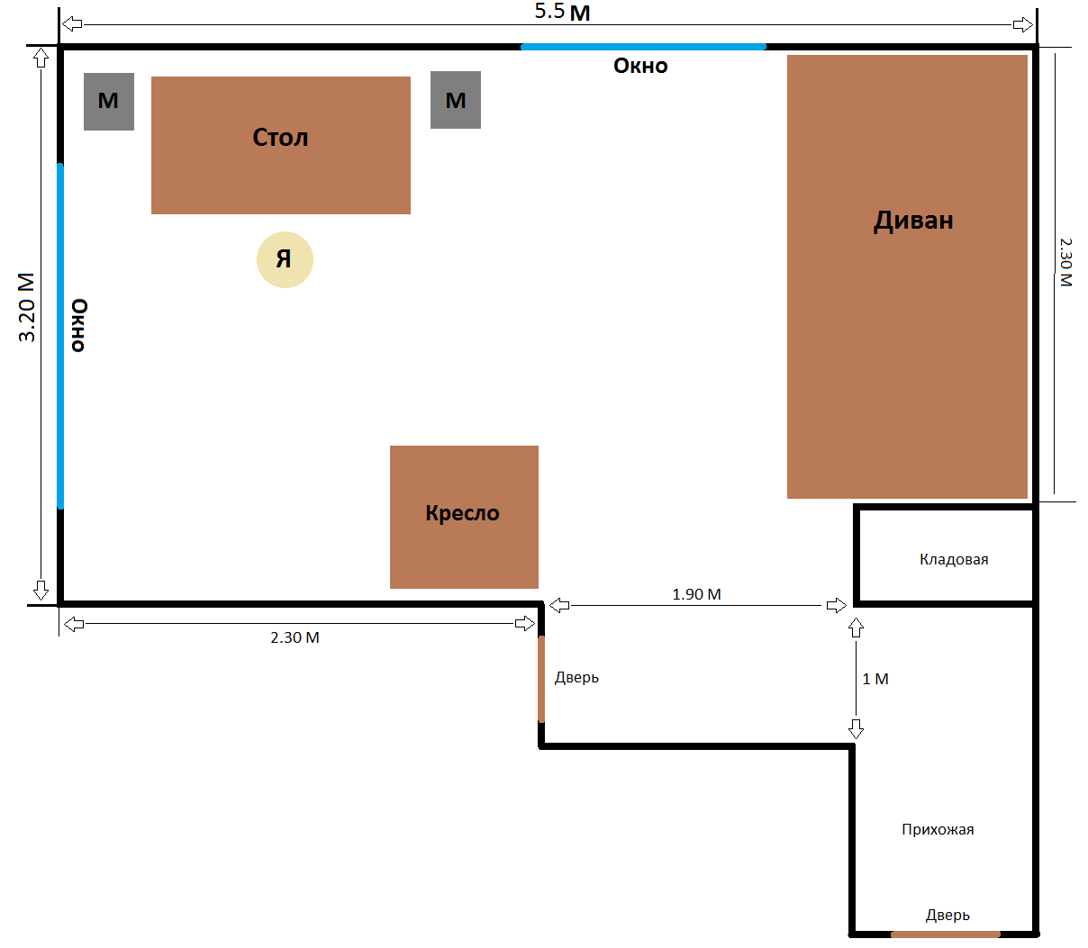 @DenNech, В том то и дело, что когда стоят мониторы абсолютно неправильно, фото приложу ниже, я слышу все детально и хорошо, по всему спектру, а при попытке поставить по всем рекомендациям сразу непонятно ничего на низах. На картинке ниже нарисовал как они стоят у меня. Окно слева полностью зашумил ловушками из ваты каменной, 10 см толщиной, ставил мониторы тыльной стороной к ним, на равном расстоянии от стен. Звук вообще непонятный...