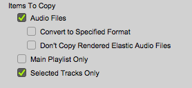Доброго времени суток, хочу вот узнать - есть PT сессия, туда импортированы несколько wav-файлов одинаковой длины, каждый на отдельный трек. Далее сделан Strip silence и на каждом треке вместо единого 'файла' получились отдельные фрагменты-регионы. Они видны в окне Clips в виде 01_kick_01, 01_kick_02, 01_kick_03 и т.д. Возможно ли мне как-либо экспортировать и сохранить файл PT-сессии вместе с аудио, но чтобы каждый отдельный фрагмент-регион с каждого трека сохранялся в отдельном файле ? Там можно отдельно экспортировать из окна Clips каждый clip в файл, тогда все клипы появляются wav-файлах в том виде, в каком они находятся на треках. Но если я пытаюсь экспортировать сессию, то у меня звуковые файлы экспортируются целиком, т.е. в том же 'целом' виде, как они есть в источнике. Т.е. мне нужно, чтобы в итоге экспорта был файл проекта-сессии и 'прилинкованные' к нему аудио-файлы, но не исходные целые дорожки, а именно как отдельные клипы.