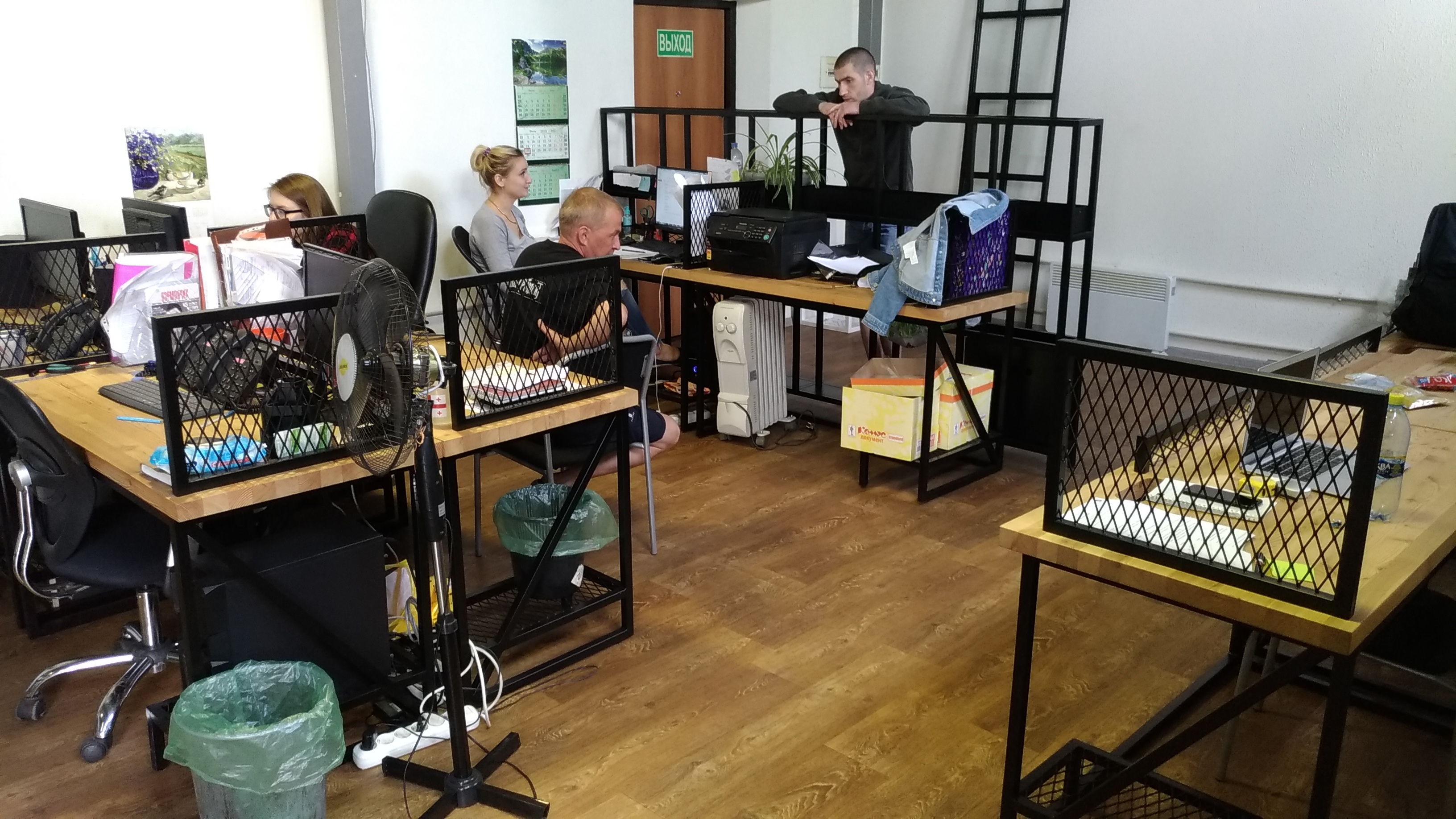 Вот еще в одном из офисов тоже линолеум (и мебель тоже авторско-самодельная)