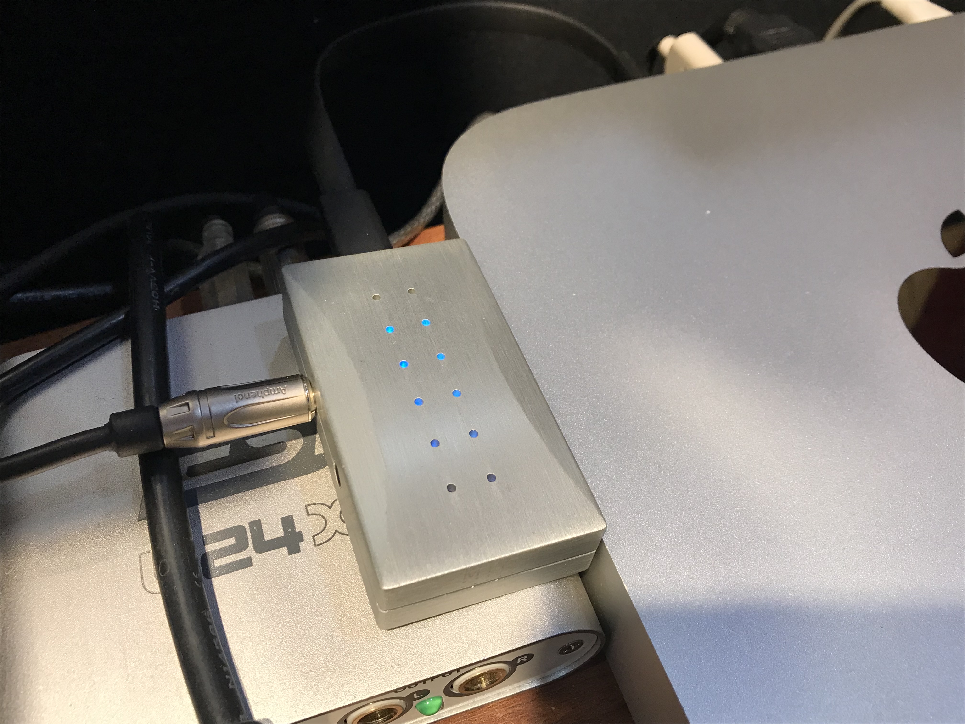 Для информации: это кастомный da/ad, был такой проект Miyo, но не так давно он был закрыт и остатки девайсов распроданы. Сделан на базе pcm1792, имеются 2 выхода на tpa6120, питание двухполярное (+/-15) за счёт встроенного преобразователя dcp020515du. Жрёт тонну миллиампер от usb порта и греется как печка ))