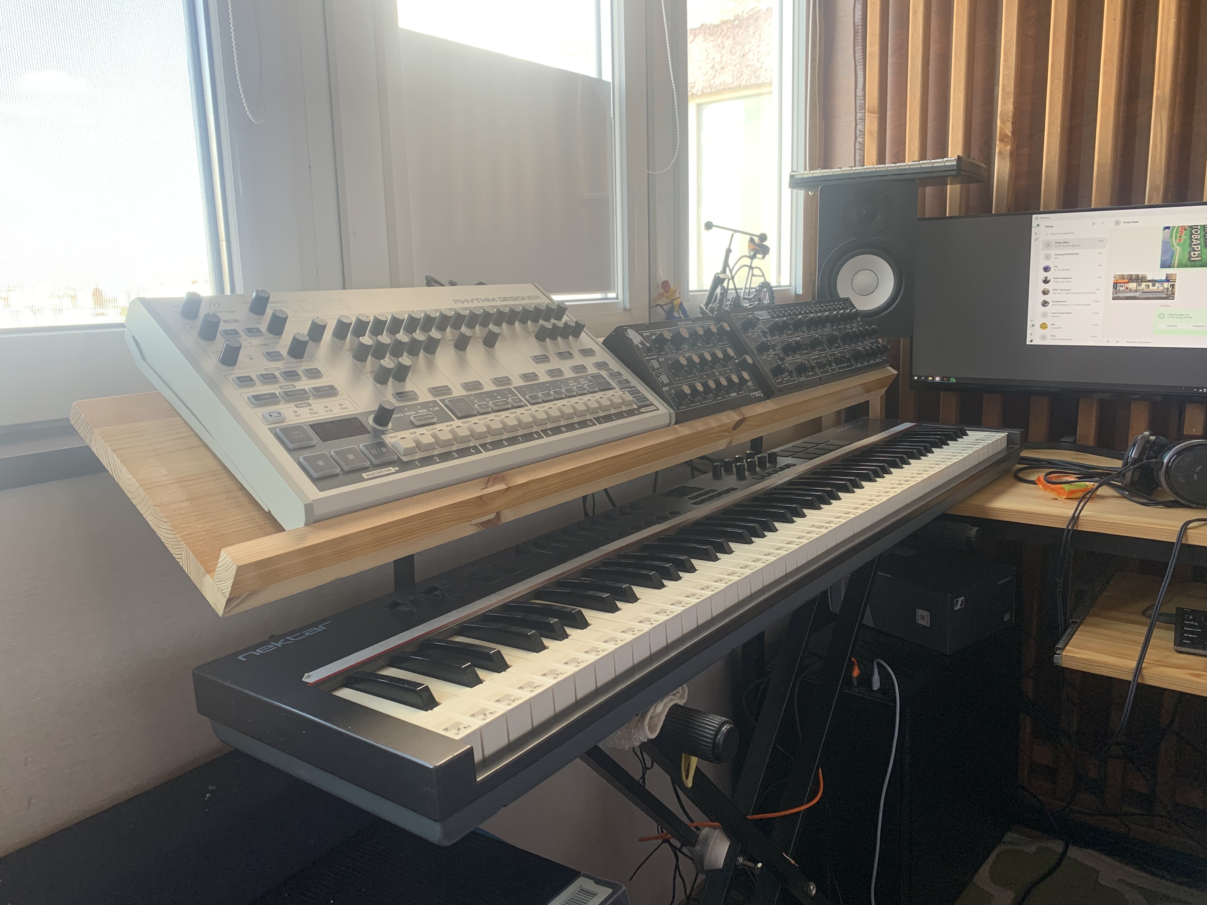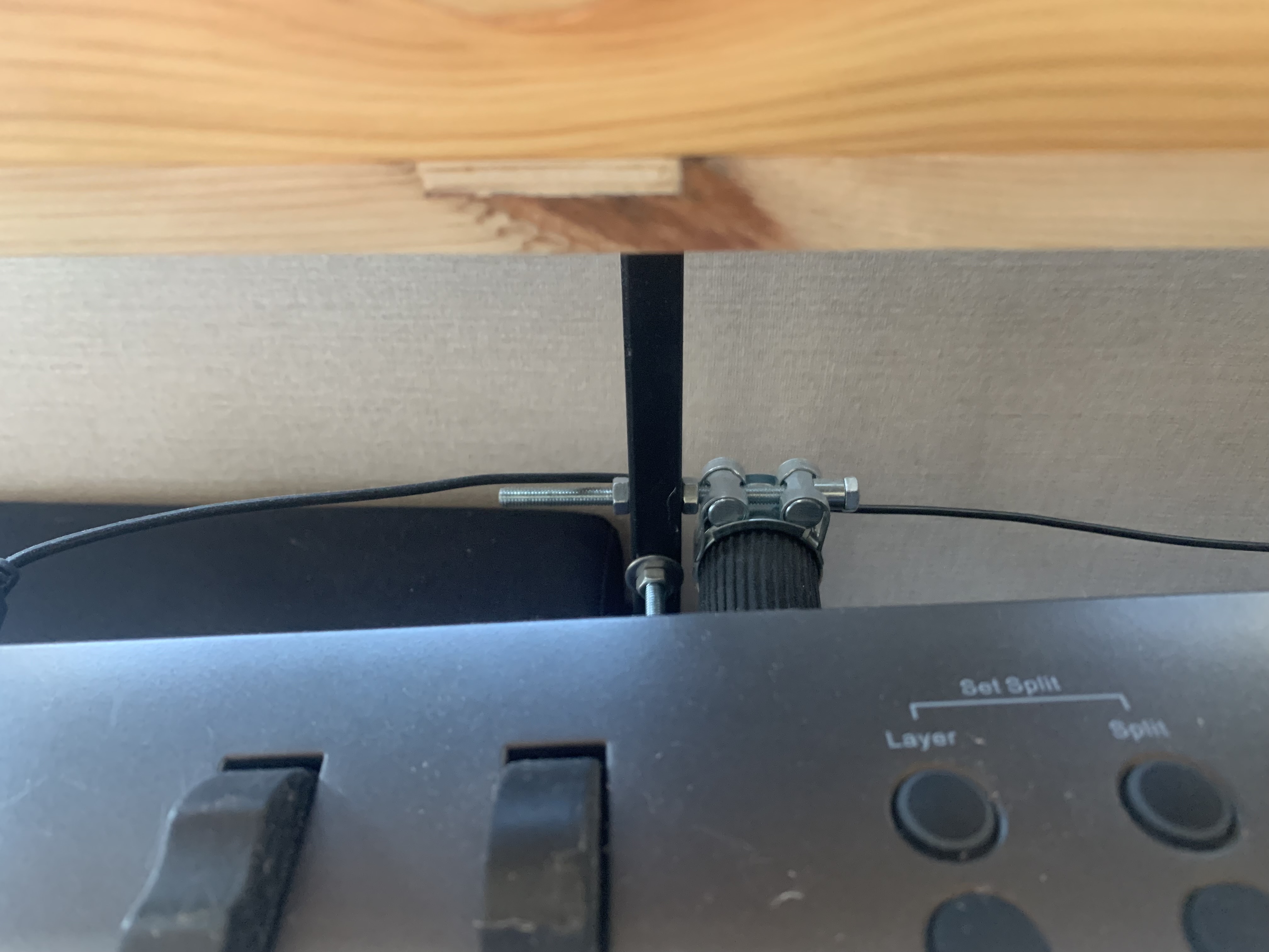 И вот такую стойку забабахал под синты, держится она с помощью стойки синтезаторной)), но держится убедительно)